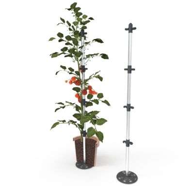 Tomato Buddy je orodje za vzpenjanje paradižnika za vsakega pridelovalca. Posamezne elemente lahko namestite intuitivno brez orodja in jih preprosto sestavite. Tomato Buddy se prilega vsem okroglim dnom navadnih loncev z notranjim premerom vsaj 20 cm. Vgrajena podlaga zagotavlja podjetju Tomato Buddy izvrstno stabilnost. Pred sajenjem se palica vstavi v lonec in samodejno pritrdi zaradi teže zemlje. Vaše dragocene rastline so tako zanesljivo zaščitene pred prevrnitvijo. Na obeh straneh palice so pritrjeni kavlji. Rastlinski poganjki zlahka, varno in hitro rastejo ter se pritrdijo na drog. Zaradi posameznih cevi iz visokokakovostnega aluminija je Tomato Buddy spremenljive višine in raste skupaj z rastlino. Zaradi štirih aluminijastih cevi, vključno s podstavkom, je skupna višina 125 cm. Paket vsebuje 3 kose nosilne palice.