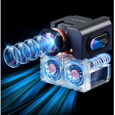Raven hrupa pod 32 dB pomeni, da vas projektor ne bo motil niti v tihih prizorih. Projektor lahko projicirate z diagonalo 55–120", na steno, zaslon ali celo na strop (z opcijskim kardanskim stojalom). Zaradi kompaktne velikosti in teže 3,3 kg ga lahko preprosto premikate med sobami ali ga vzamete s seboj na kočo.